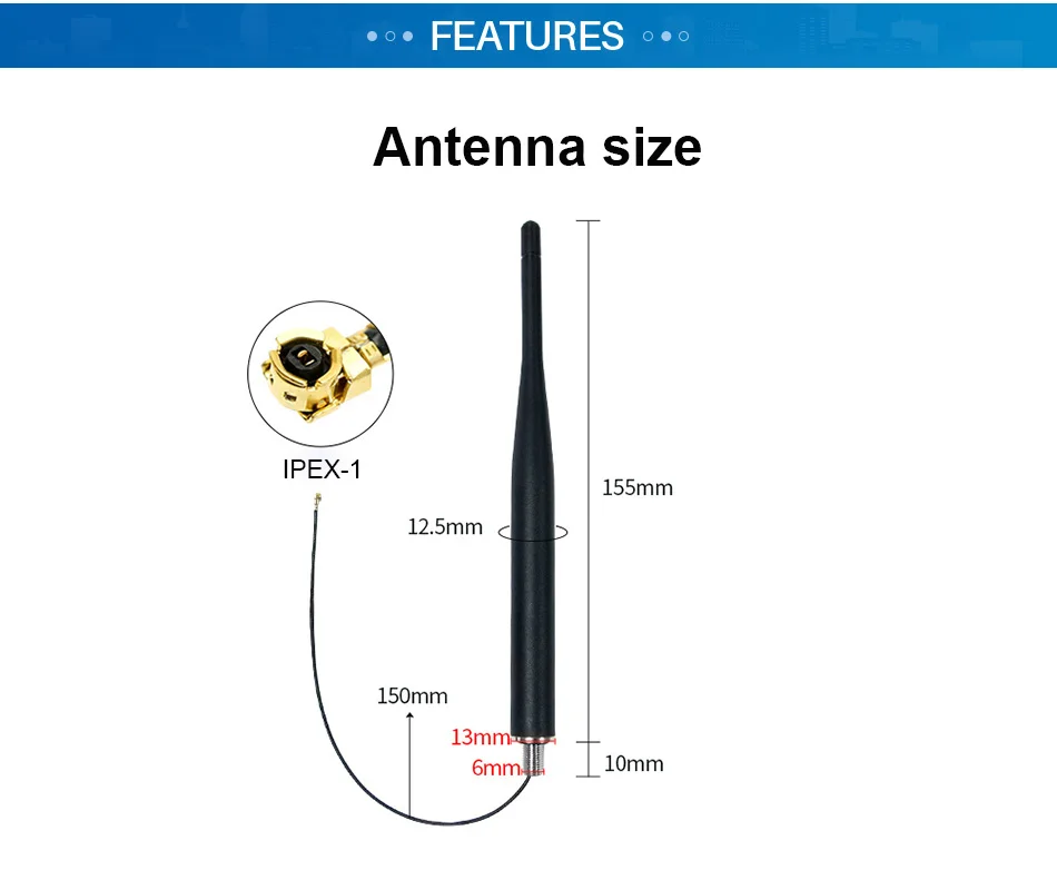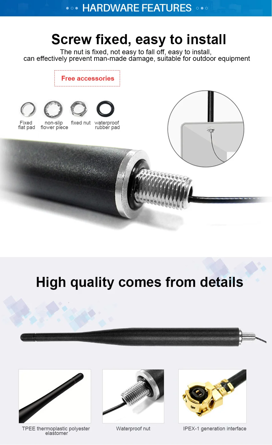 TX868-JZLW-15 ist eine Gummiantenne mit 868-MHz-Frequenzband, Antennengröße ca. 165 mm, Schnittstelle ein IPEX-1-Steckverbinder, geeignet für 868-MHz-Frequenzband-Geräteschränke, Schaltschränke, Logistikflotten, Objektsicherheit, Hotel und Gastronomie, Kettenunternehmen, Baustellen, Funkbegeisterte im Freien, Taxiteams und ähnliche Anwendungsgebiete.#