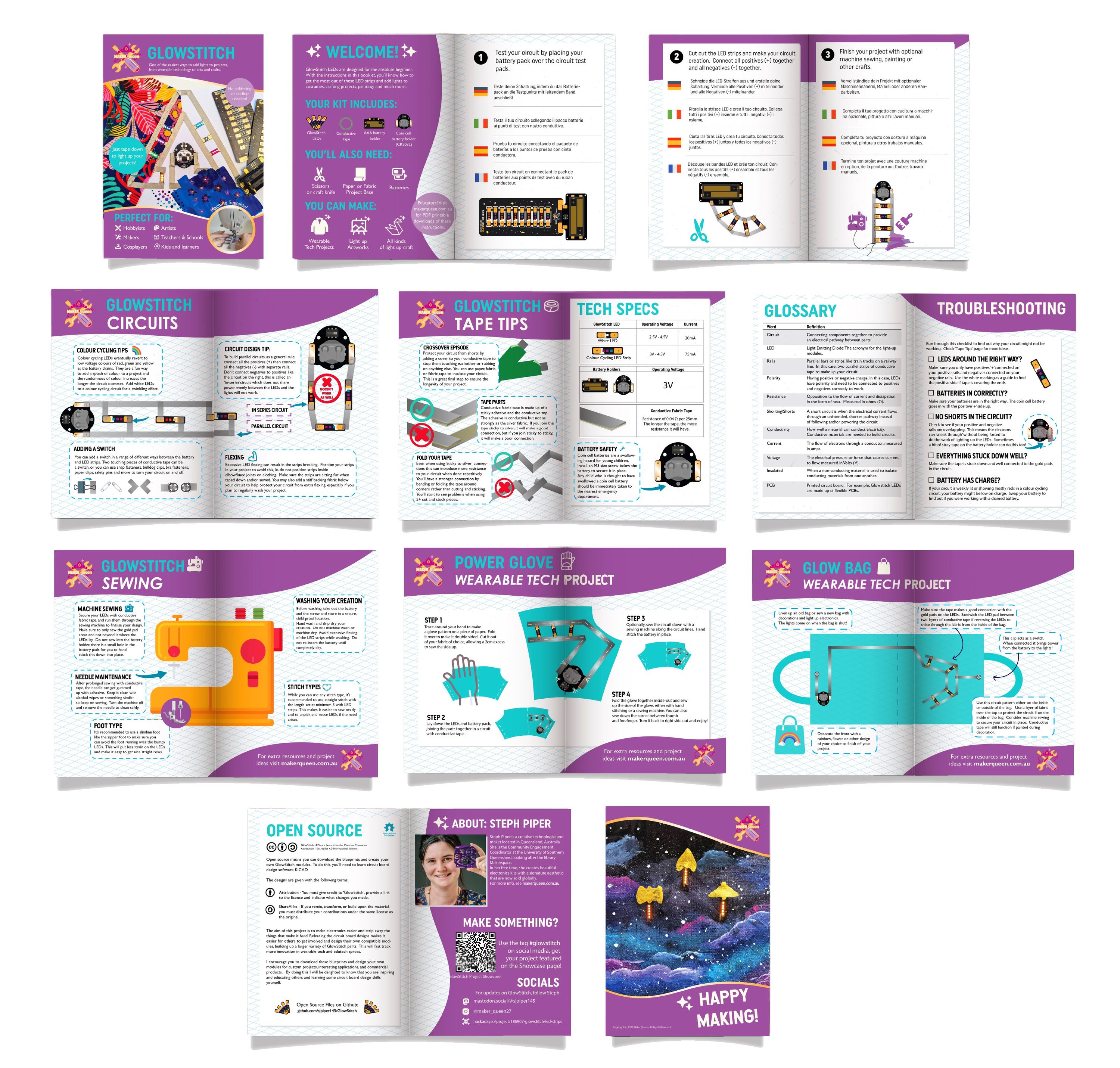 New to electronics? No worries! Every GlowStitch kit comes with a colorful, 20-page guide that walks you through everything step by step. Packed with useful tips, troubleshooting advice, tutorials, and inspiring project ideas, this guide makes getting started easy—even for complete beginners! Clear explanations and vibrant illustrations ensure an enjoyable learning experience.