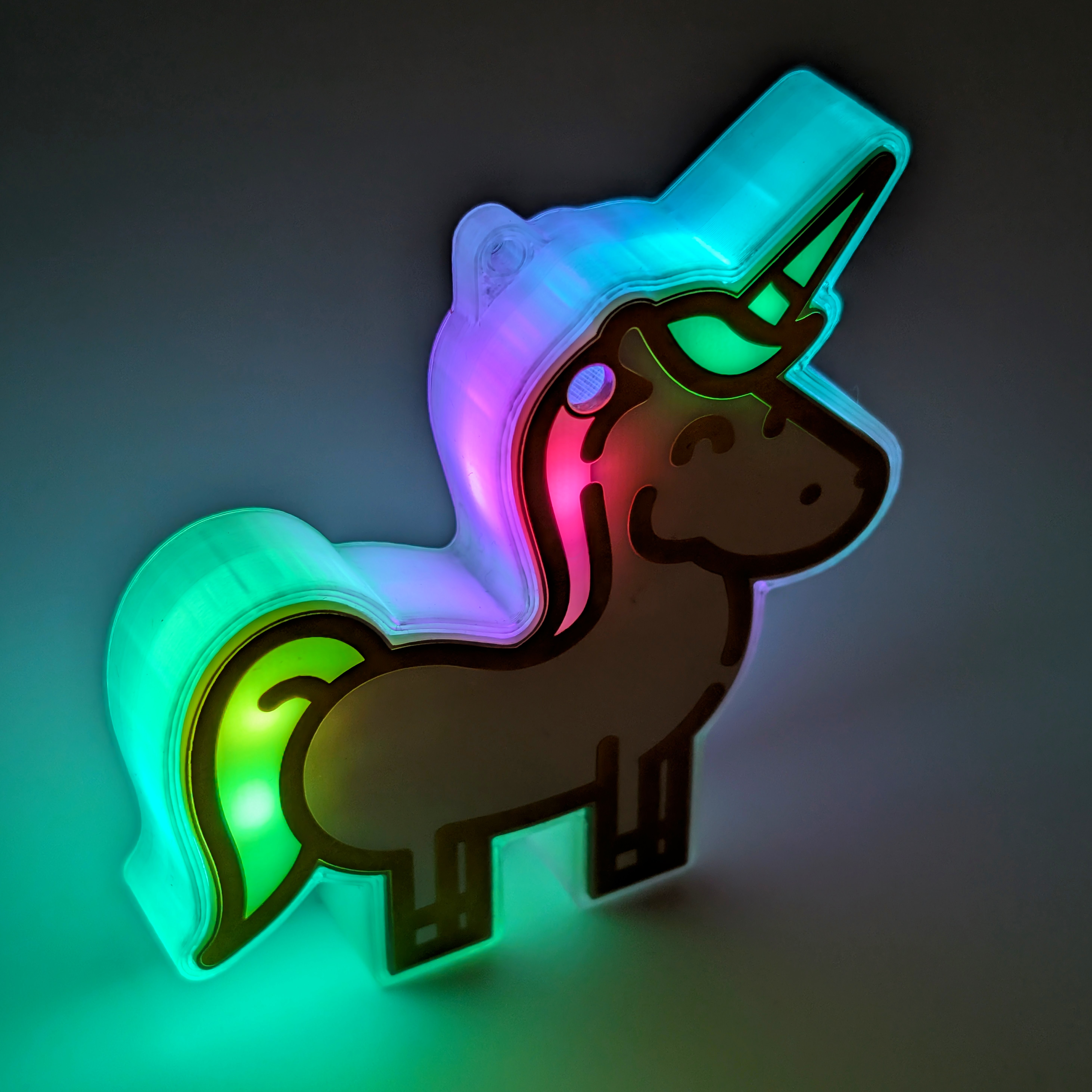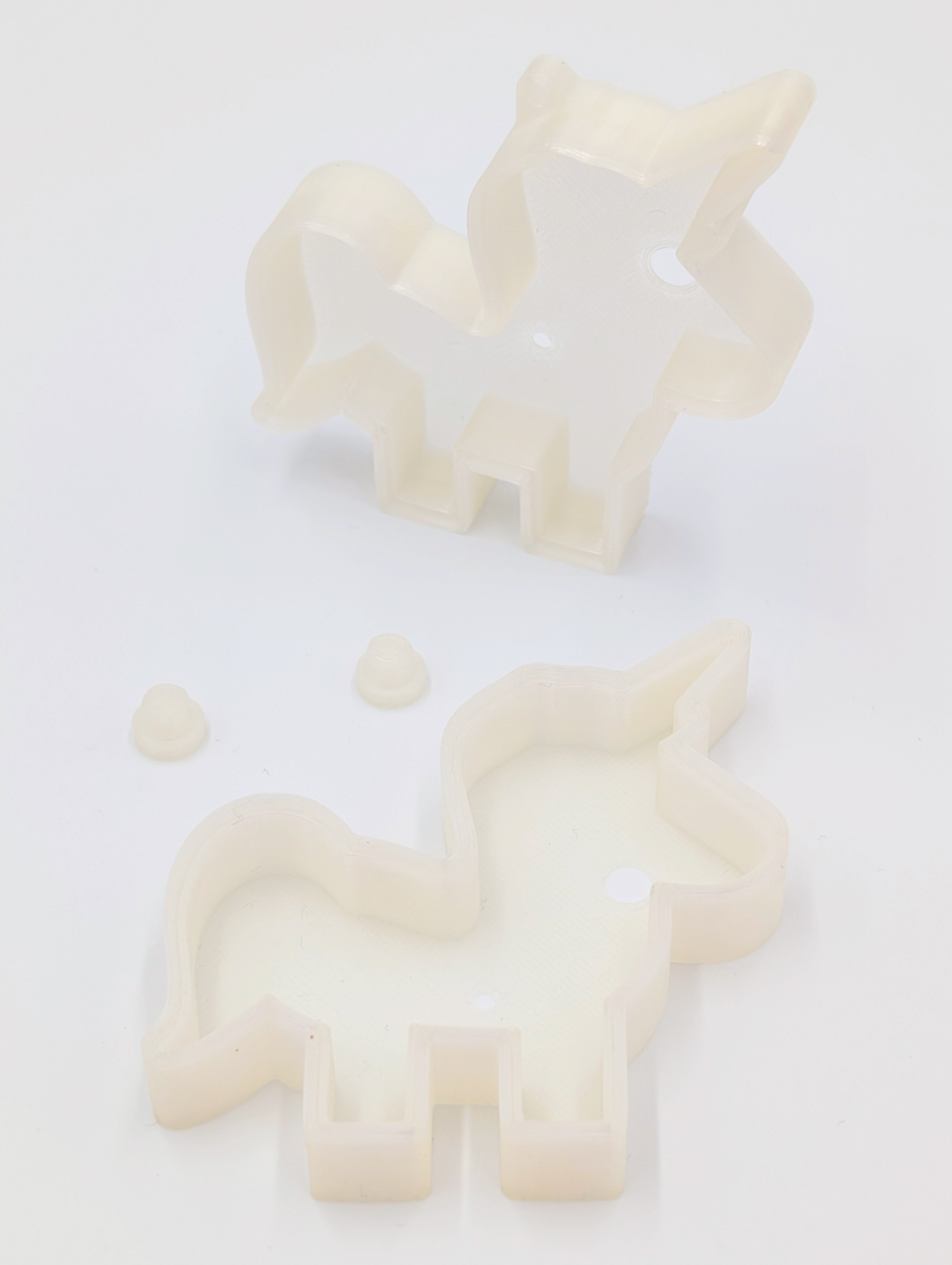 This Snapfit Case is the perfect addition to the Rainbow Unicorn Soldering Kit! It provides a stylish way to display your unicorn while enhancing its glow.