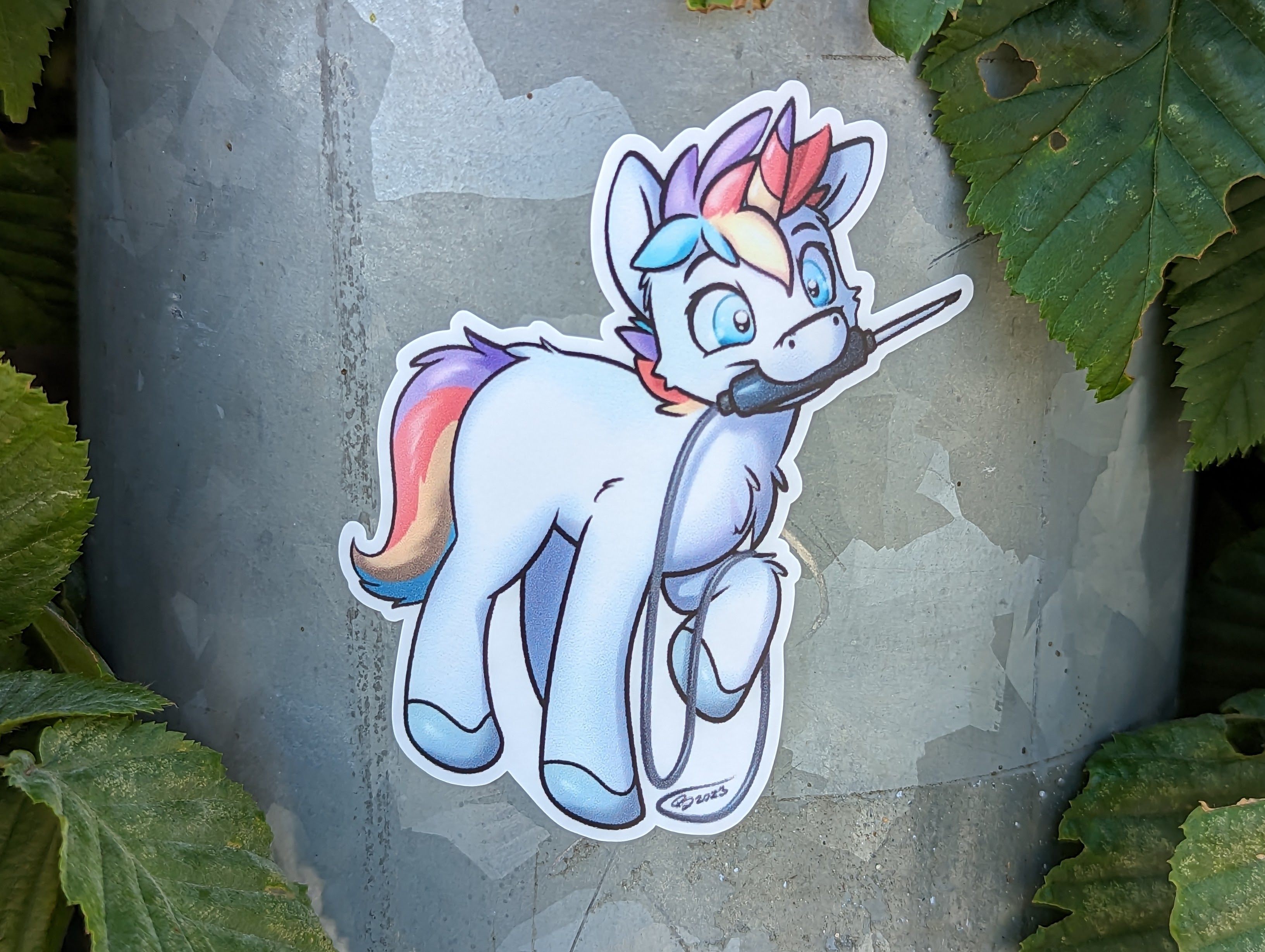 The shining of children's eyes at their first own soldering kit and the joy in the hearts of the people who solder, love and give away the soldering kits is simply magical! Soldering is simply magical! Gary the soldering unicorn is our ambassador for it and shows it impressively on these absolutely high-quality outdoor stickers!